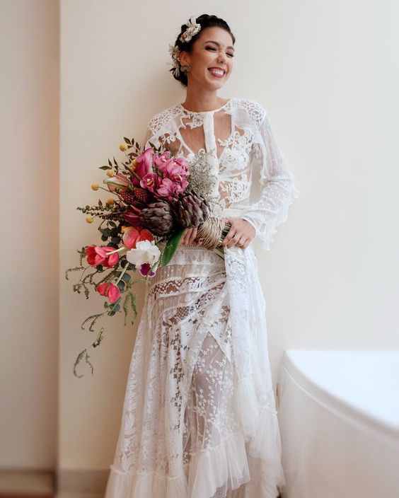 A maquiadora Vanessa Rozan casou em 2017 com esse vestido de perfume vintage escandalosamente lindo. Acho tudo na medida, elegante, classudo e adoro principalmente o fato que ela não usou nada na cabeça.