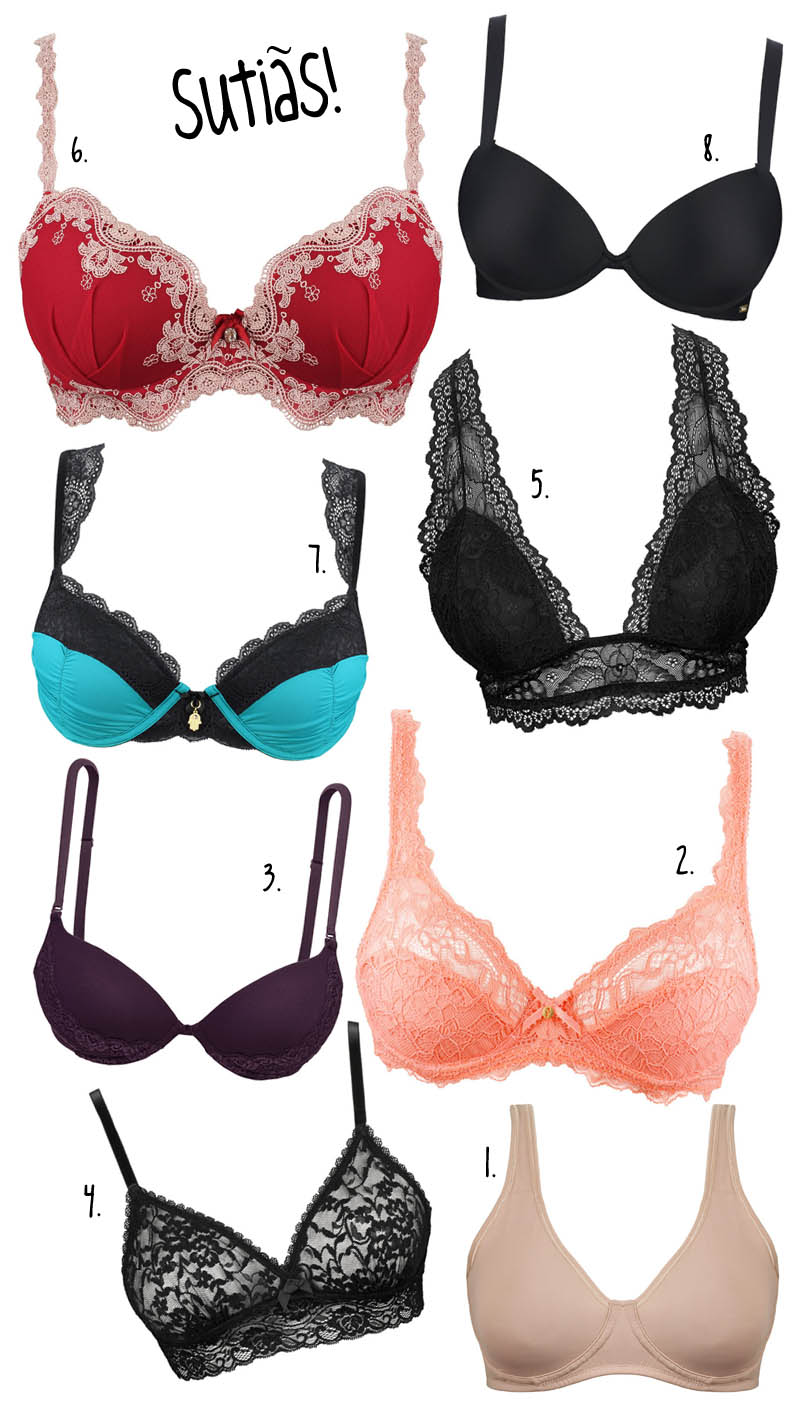 Eu confesso: muitas e muitas vezes eu me empolgo tanto com roupas, bolsas e sapatos, que esqueço o que ninguém está vendo, mas que precisa valer o investimento: a lingerie! A pobre coitada fica em segundo plano algumas vezes, mas tem papel fundamental no caimento das nossas roupas além de transmitir uma mensagem de sensualidade, de segurança e feminilidade! 🙂