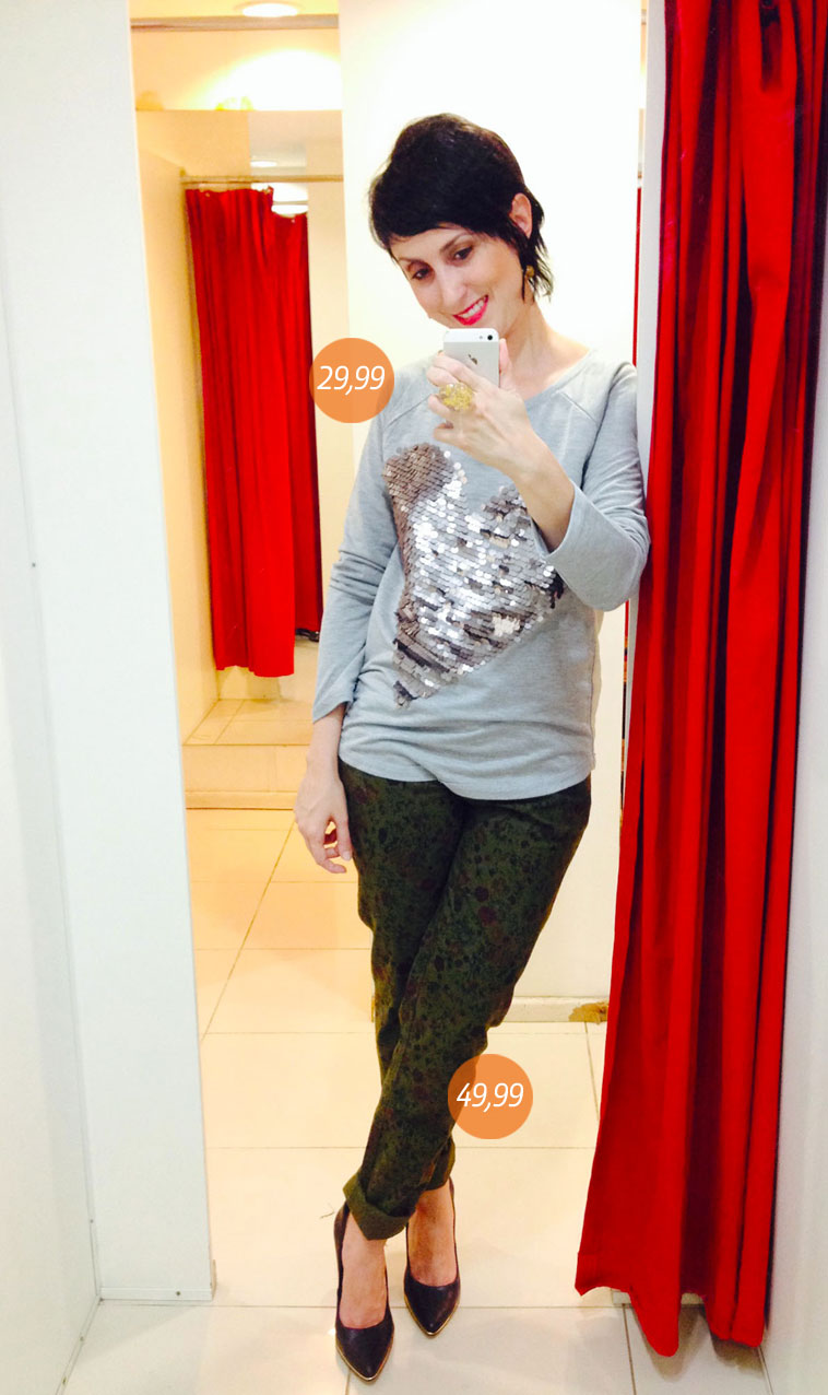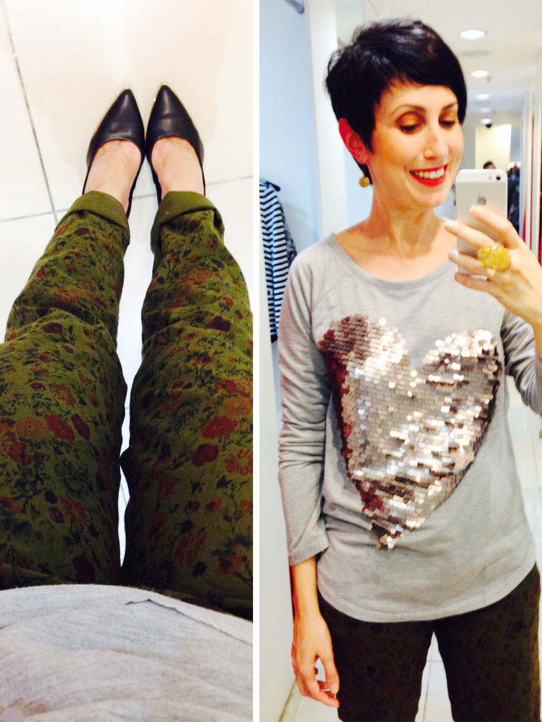 E o novo moletom agora tem cara de roupa boa pro dia a dia, de atual, festeiro! Eu achei essa blusa com coração em paetê uma fofura (e o preço mais fofo ainda: 29,99! hahahahaha)! Já mostrei aqui também a jaqueta da mesma estampa da calça, mas não a achei na loja que eu fui!