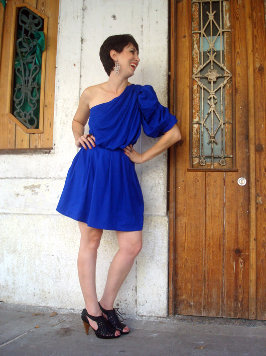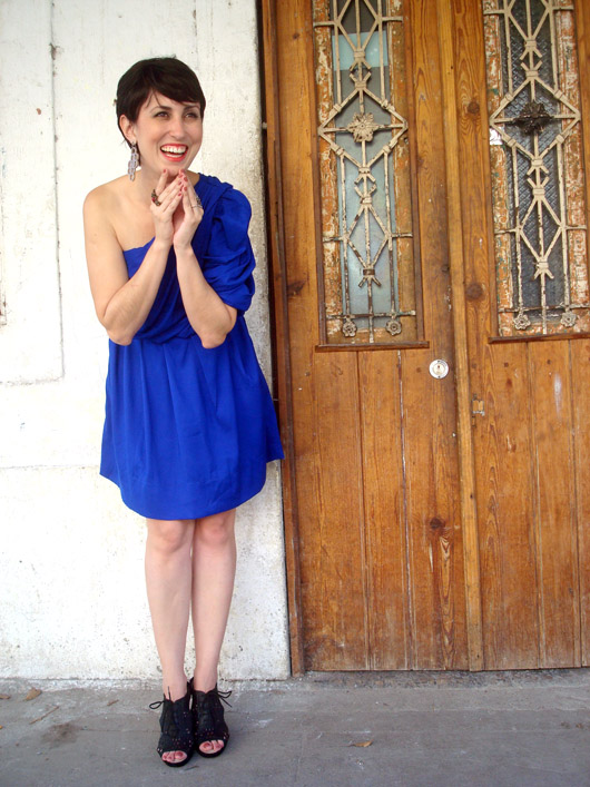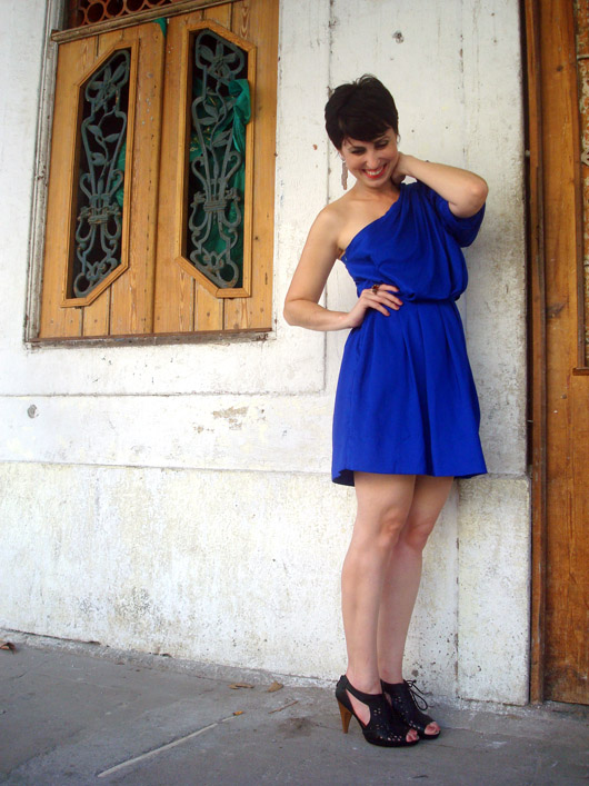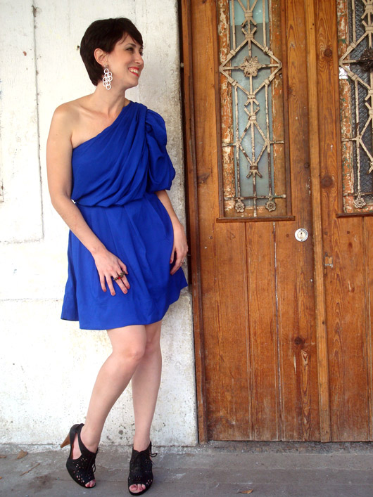 E hoje eu acordei querendo #ousar! E nem digo a minha ousadia habitual que vocês estão acostumados, hahaha, com misturas inusitadas de cores e de volumes. Pensei em ousar fugindo justamente do meu dia-a-dia, com um vestido com decote nos ombros e um salto alto, coisa rara de me ver usando. Para ser ousada em um look, a gente também pode optar por uma cor vibrante, um detalhe mais chamativo, o decote (nos ombros ou nas costas são sempre sensuais na medida), ou um belo par de saltos. Por issso eu pensei logo nesse vestido azul (cor super em alta pra primavera-verão 2012!) que é um modelo que eu acho lindo mas nunca havia conseguido usar! Imaginei esse look para um jantar, algo um pouco mais informal, por isso escolhi a open boot preta, para quebrar o lado festa do vestido. E o melhor é que apesar do salto alto, ela é super confortável, com a parte interna inteira acolchoada, sem contar que é uma peça-curinga, combina com praticamente tudo no armário!