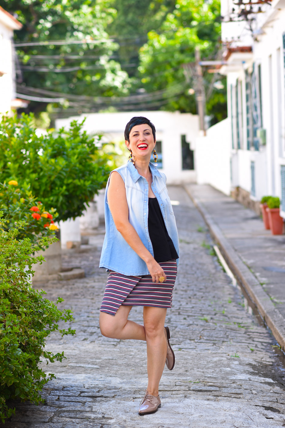 Nesse caso as duas renderam juntas um look super descoladinho mas cheio de paranauê pro final de semana. 🙂 A camisa jeans aberta funciona como um colet1234xford quase no tom da minha pele me permite sair por aí com conforto e com uma sensação de perna mais alongada!