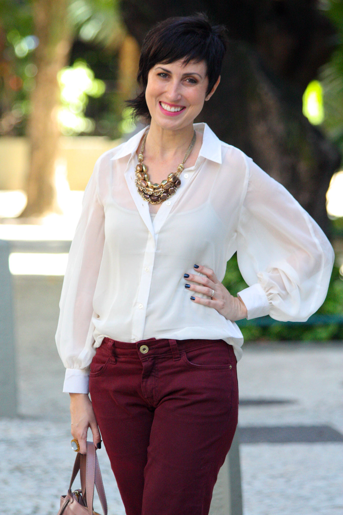 Essa é a tal blusa que eu achei transparente demais? Engraçado como não ficou transparente de jeito nenhum, vc usou underwear não foi? Amei!!!!!