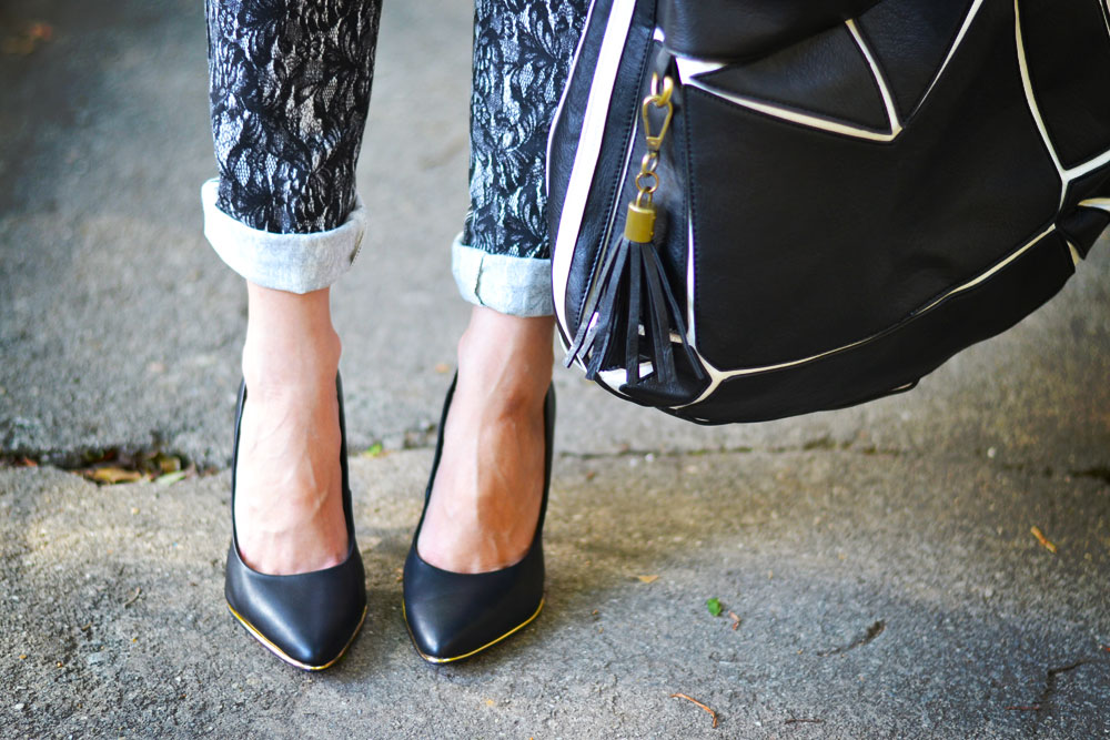 Bom, o desafio foi pensar além, não ser óbvia usando apenas essas duas cores, tipo camiseta branca e calça preta, sabem? 🙂