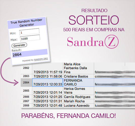 Resultado sorteio Sandra Z!