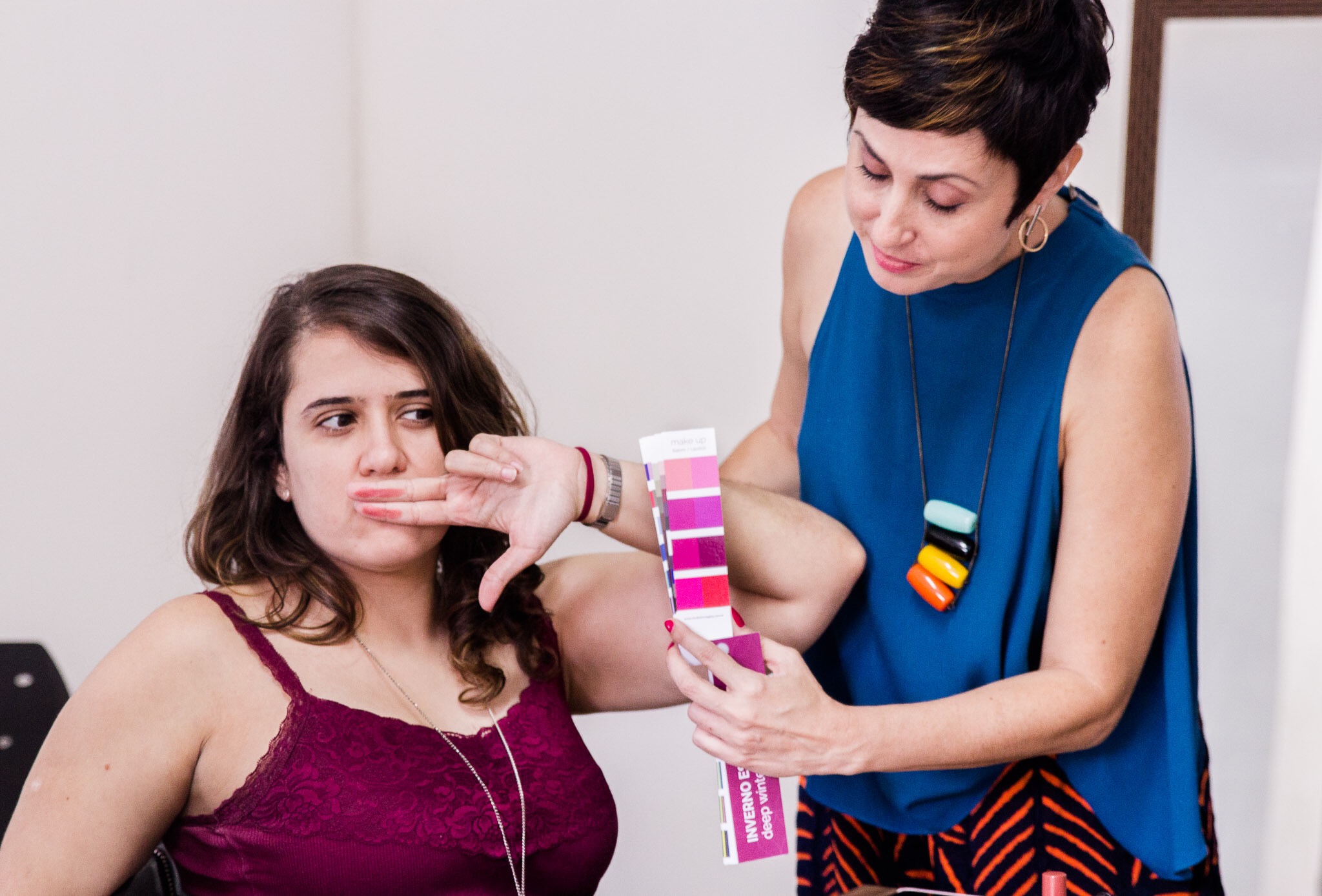 – Teste dos batons e maquiagem de acordo com cada cartela de cores;
